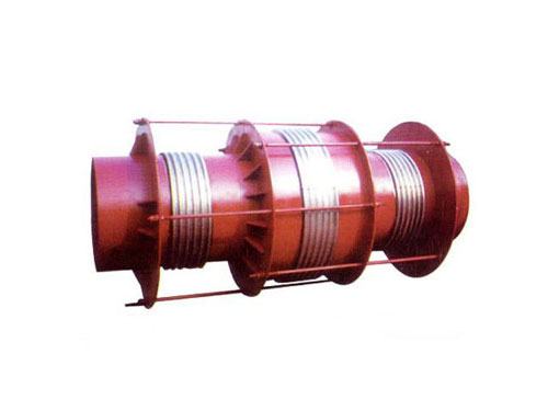 該膨脹節(jié)的兩端各有一個(gè)工作波紋管,中間有一個(gè)平衡波紋管,膨脹節(jié)通過(guò)受力構(gòu)件(大拉桿或舌管)來(lái)承受內(nèi)壓推力,因此管系只需中間固定支架。此類(lèi)膨脹節(jié)只能吸收軸向位移。